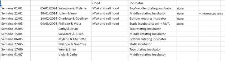 Book the incubators with the outlook calendar (ask Julien for the access)